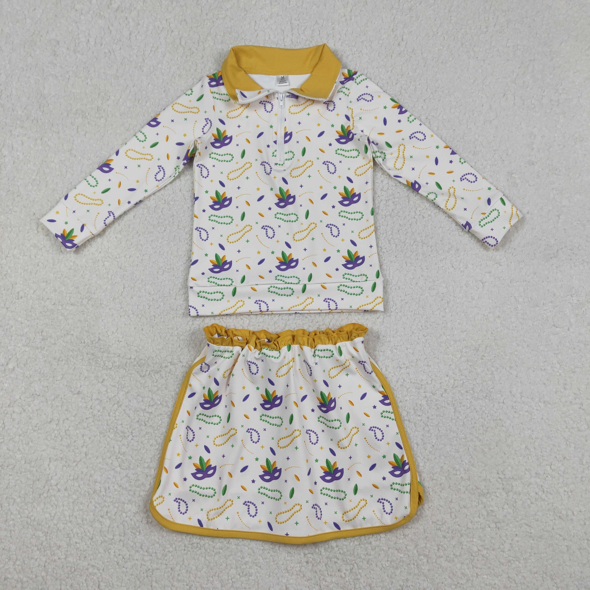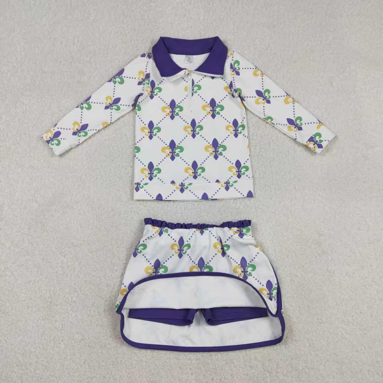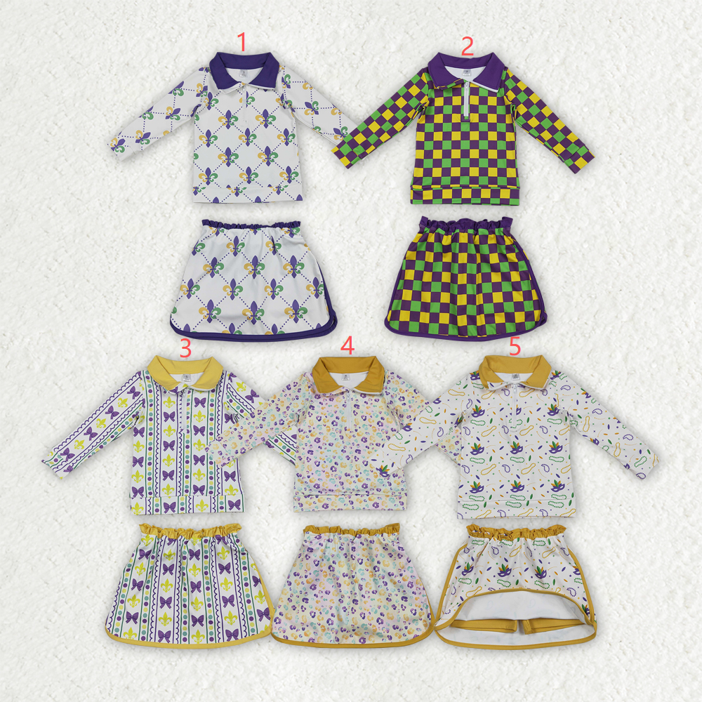 Sibling Baby Girls Mardigras Bows Anchors Leopard Zip Pullovers Skirt Shorts Yoga Active Clothes Sets